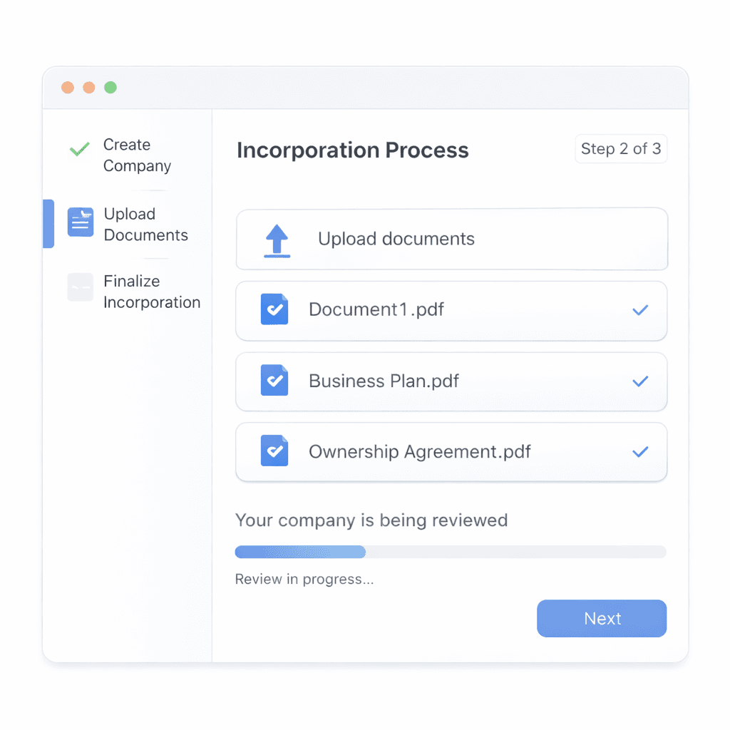 From license eligibility to post-incorporation setup, guided end-to-end.